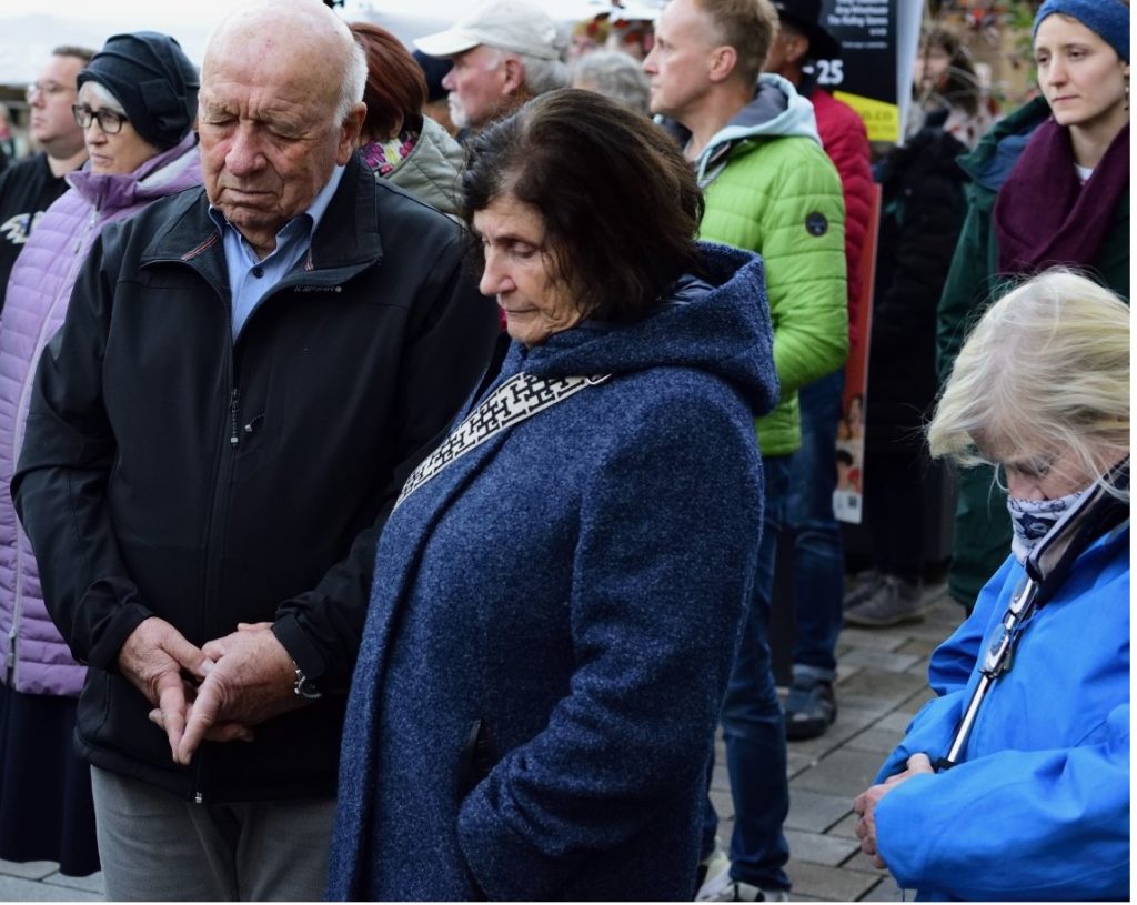 Wir danken dem Kantor Nathan Goldman für das Gebet und Sabina Morein für die HaTikva. Die HaTikva auf dem Marktplatz im Video.
